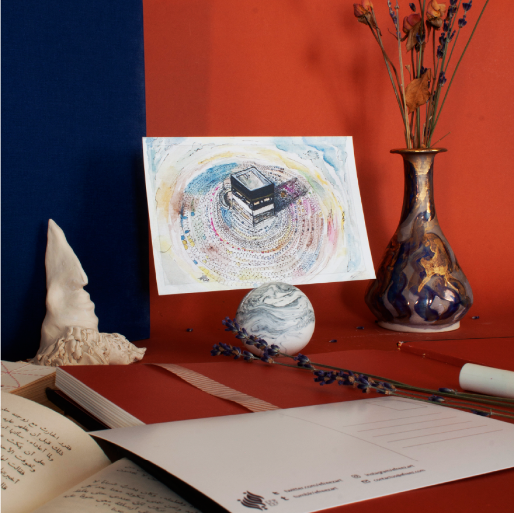 مثلت فيه الفنانة الطواف حول الحرم مع تنوع الثقافات والأعراق واتحاد الوجهة .