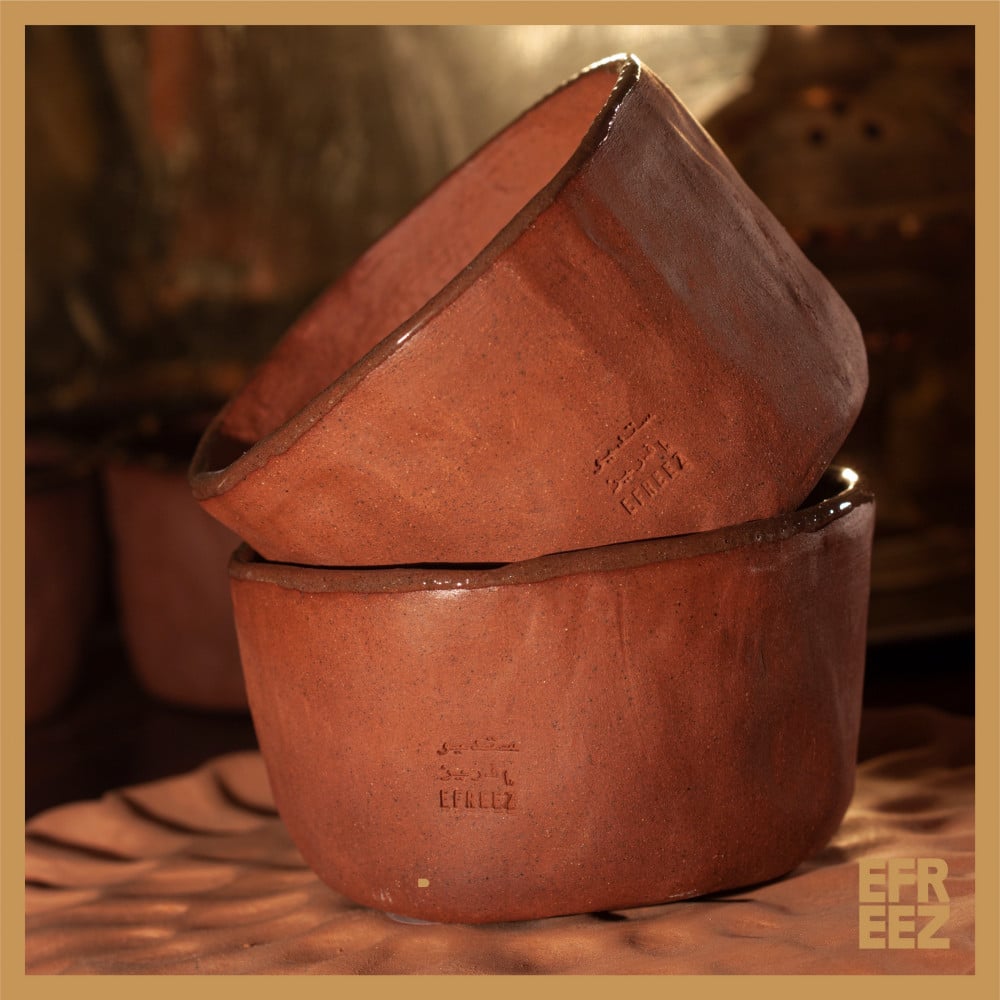 الملمس : بملمس سعف النخيل من الداخل غير مزجج خشن نوعًا ما