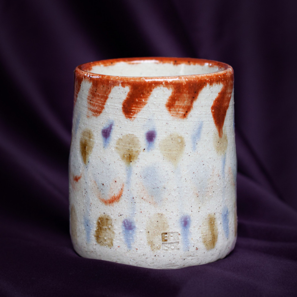ورُسمت بأنماط زخرفية وزهور مُكونه من دوائر لضربات فرشة بأحجام متفاوتة ، وبألوان ربيعية مشعه ومشرقة 🌻