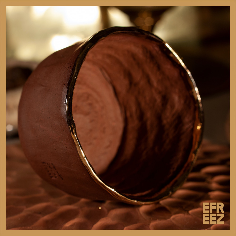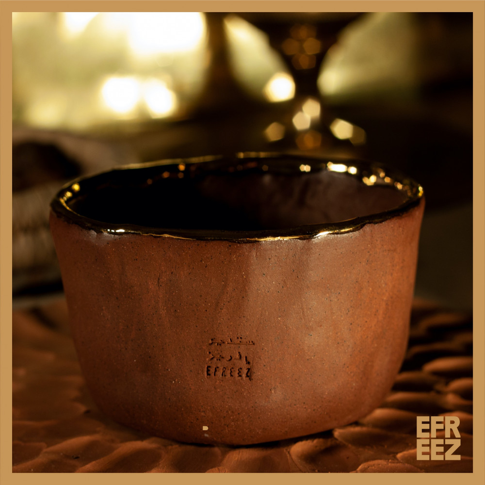 اللون : بني غامق ، مزجج فقط من الأعلى ، مذهب